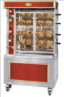Цвета: красный, черный, зеленый, синий Вместимость одного шампура 4 курицы ±1,2 кг Электрическое зажигание искры Все элементы гриля выполнены из нержавеющей стали Галогеновая лампа 300 Ватт Съемный противень