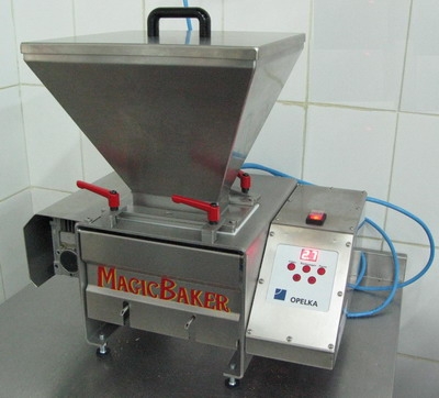 Дозатор OPELKA - дозатор шестерёнчатого типа, предназначен для дозирования различных текучих, не слишком вязких начинок. Дозируются начинки по вязкости похожие на джем, повидло, вареную сгущенку в кондитерские и хлебобулочные изделия, например: Берлинеры, трубочки, эклеры и т.п. Процесс дозирования достигается за счет специально разработанной конструкции дозирующего узла. В отличии от других дозаторов, в которых объем дозирующей камеры является общим для двух иголок, в дозаторе начинки OPELKA каждая дозирующая шестеренка приходится на соответствующую ей иголку.