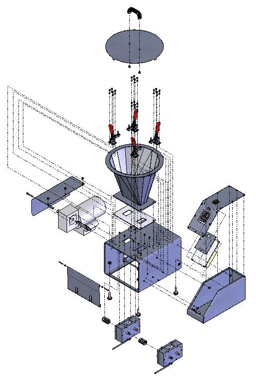 В конструкции дозатора предусмотрена возможность быстрого перехода на другую начинку. Для этого необходимо заменить дозирующую воронку (в комплекте идет одна воронка 14л, можно заказать несколько), а также дозирующие иголки.